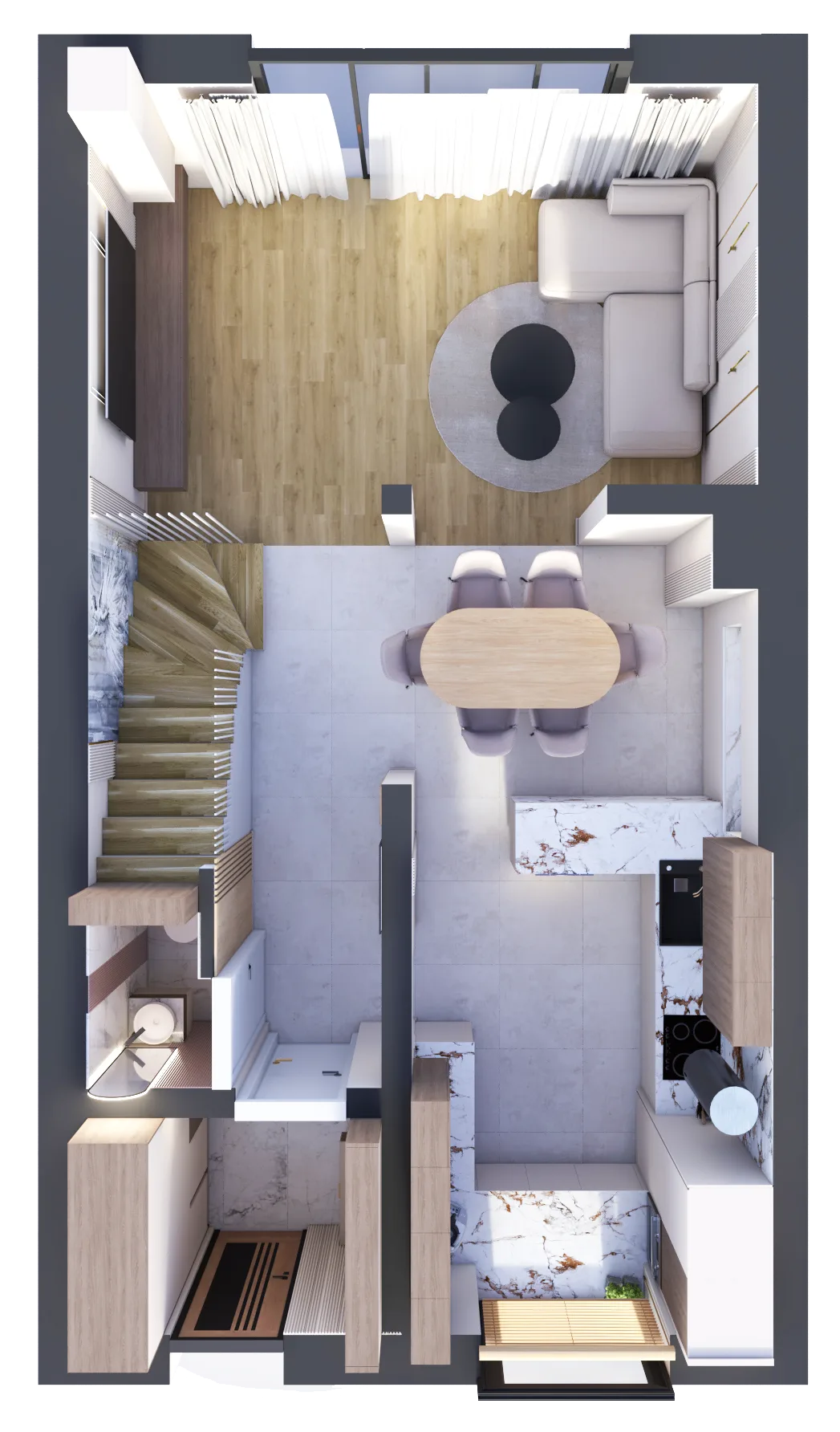 Dwupoziomowy układ domu pozwala na czytelne oddzielenie strefy dziennej od prywatnej, zapewniając codzienną wygodę i prywatność dla każdego domownika. Przemyślane rozmieszczenie pomieszczeń gwarantuje maksymalne wykorzystanie dostępnej przestrzeni.Dodatkowo do każdego domu przynależą dwa miejsca postojowe, co zapewnia komfort parkowania zarówno dla mieszkańców, jak i gości.To idealna propozycja dla osób ceniących przestrzeń, funkcjonalność i wysoką jakość wykonania – wszystko w spokojnej, dobrze skomunikowanej lokalizacji. Dobrze przemyślana lokalizacja nie tylko ułatwia codzienne funkcjonowanie, ale także zwiększa wartość inwestycji. To idealne miejsce dla osób, które szukają wygody, spokoju i dobrej infrastruktury w jednym.